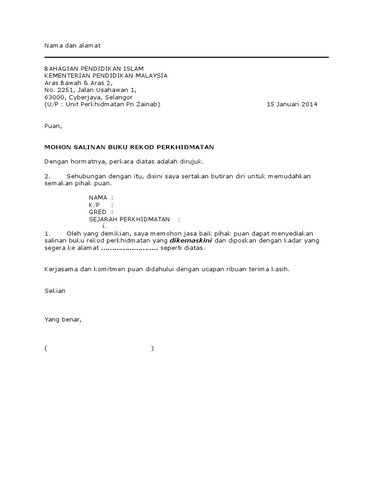 61 Pekeliling Perkhidmatan Bil. Pegawai juga boleh memohon untuk 6 mendapatkan salinan Buku Perkhidmatan daripada Ketua Jabatannya. Surat permohonan bantuan adalah jenis surat memohon bantuan samada kewanganpendidikandana perniagaanrumah dan biasiswa dari sesebuah organisasiagensi dan individu.