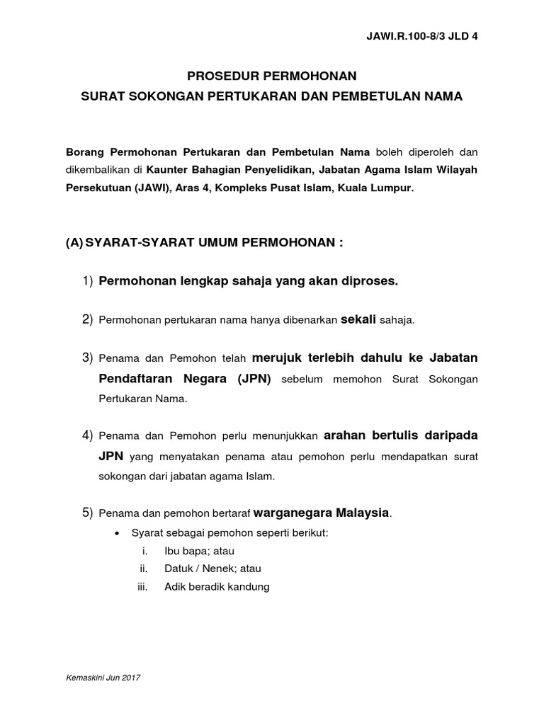 Prosedur Permohonan Surat Sokongan Pertukaran Dan Pembetulan Nama Pdf